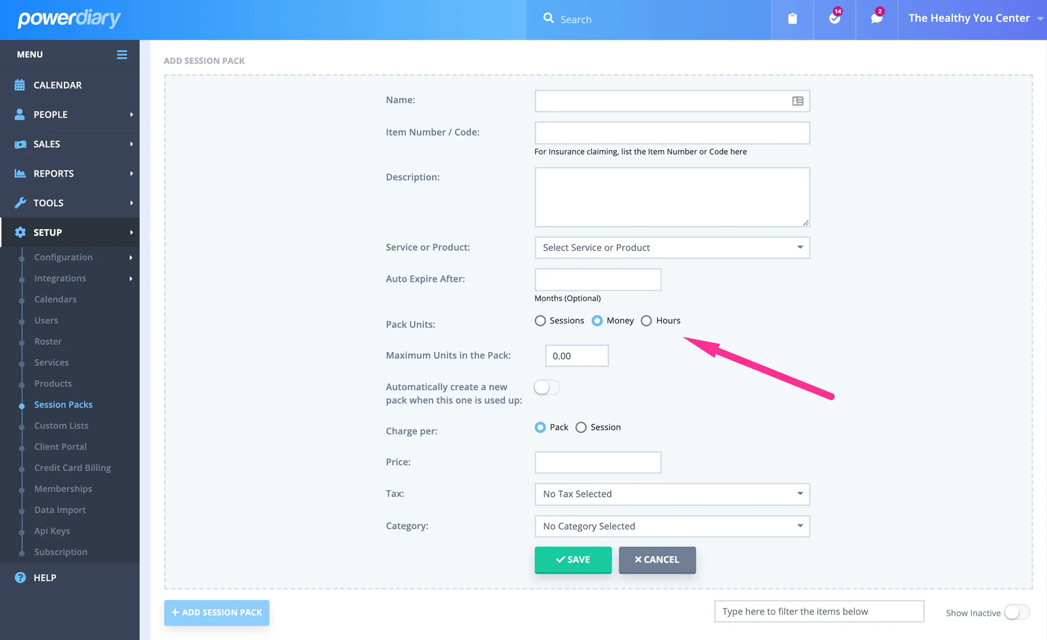 Session Packs are a very useful feature you can use when creating new appointments in Power Diary. This month we enhanced their power so they can be used to keep track of many things: the number of sessions a client attended, the total amount of money spent over many sessions, OR the total time of appointments attended. We introduced the concept of Pack Units so that you can build the right type of Session Pack for your practice: choose session, time, or money as the unit for the pack, and define the maximum units in the pack.
