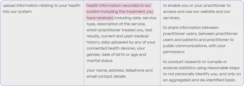 We’re highlighting the Halaxy Privacy Policy because it contains clauses we think most practitioners and patients wouldn’t expect to find. In fact, we haven’t found clauses like these in any other commonly used competitors in the marketplace.