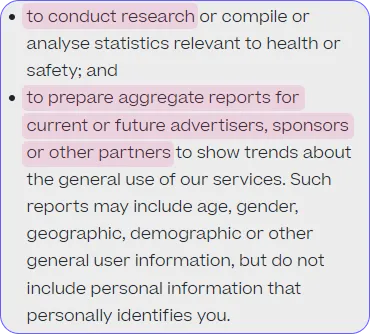 - “to prepare aggregate reports for current or future advertisers, sponsors or other partners”;